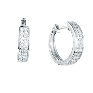 עגילי כסף 925 בציפוי רודיום / זהב ורוד  בצורת חישוק, בשיבוץ שתי שורות אבני זרקוניה לבנות