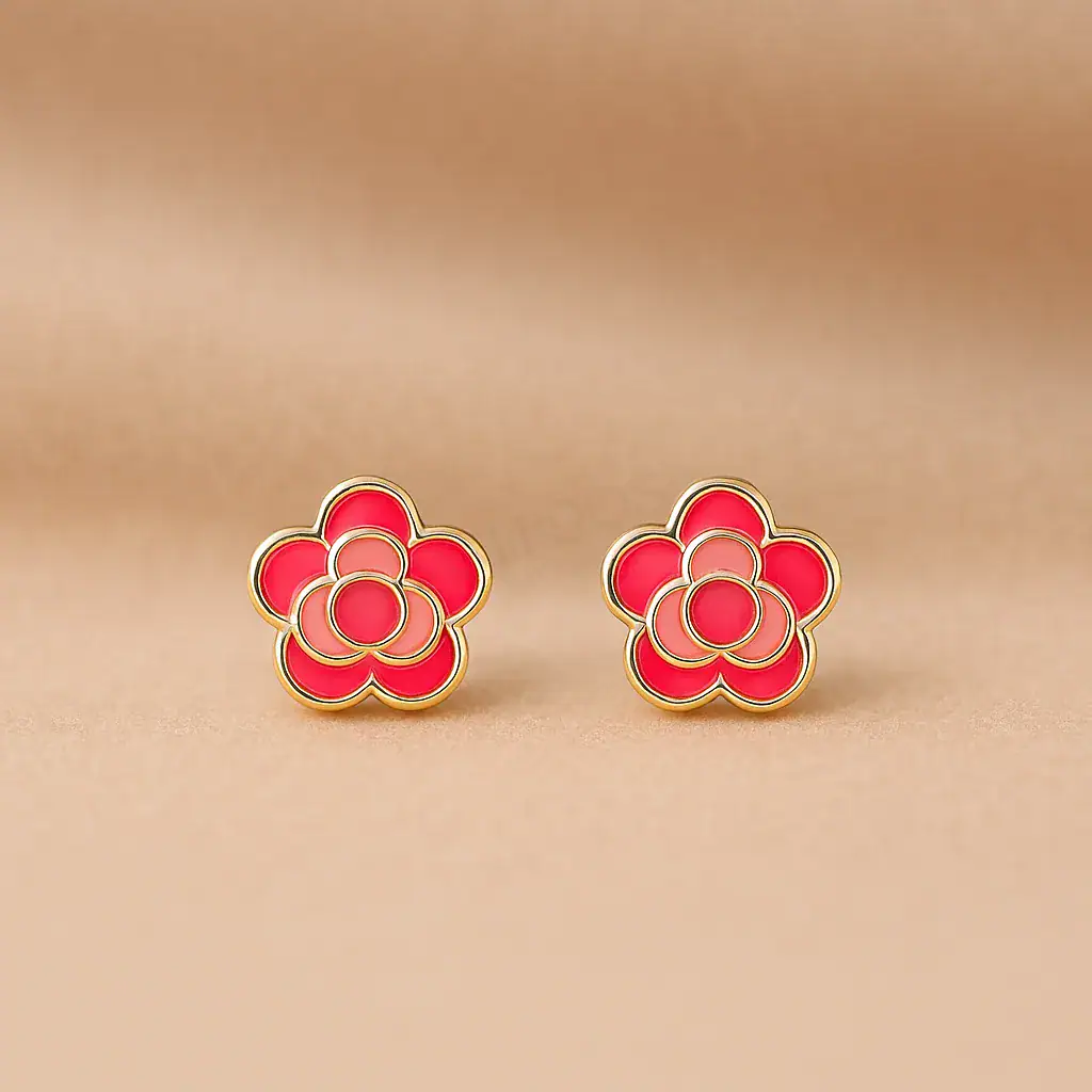 עגילי פרחים קטנים אלו משלבים בתוכם את רוח הפשטות והנאיביות, בעיצוב שמדמה פרח פורח במלוא זוהרו. הצבע הורוד העדין של הפרח משתלב בהרמוניה עם הזהב הצהוב של המתכת, מה שיוצר מראה חם ומזמין.