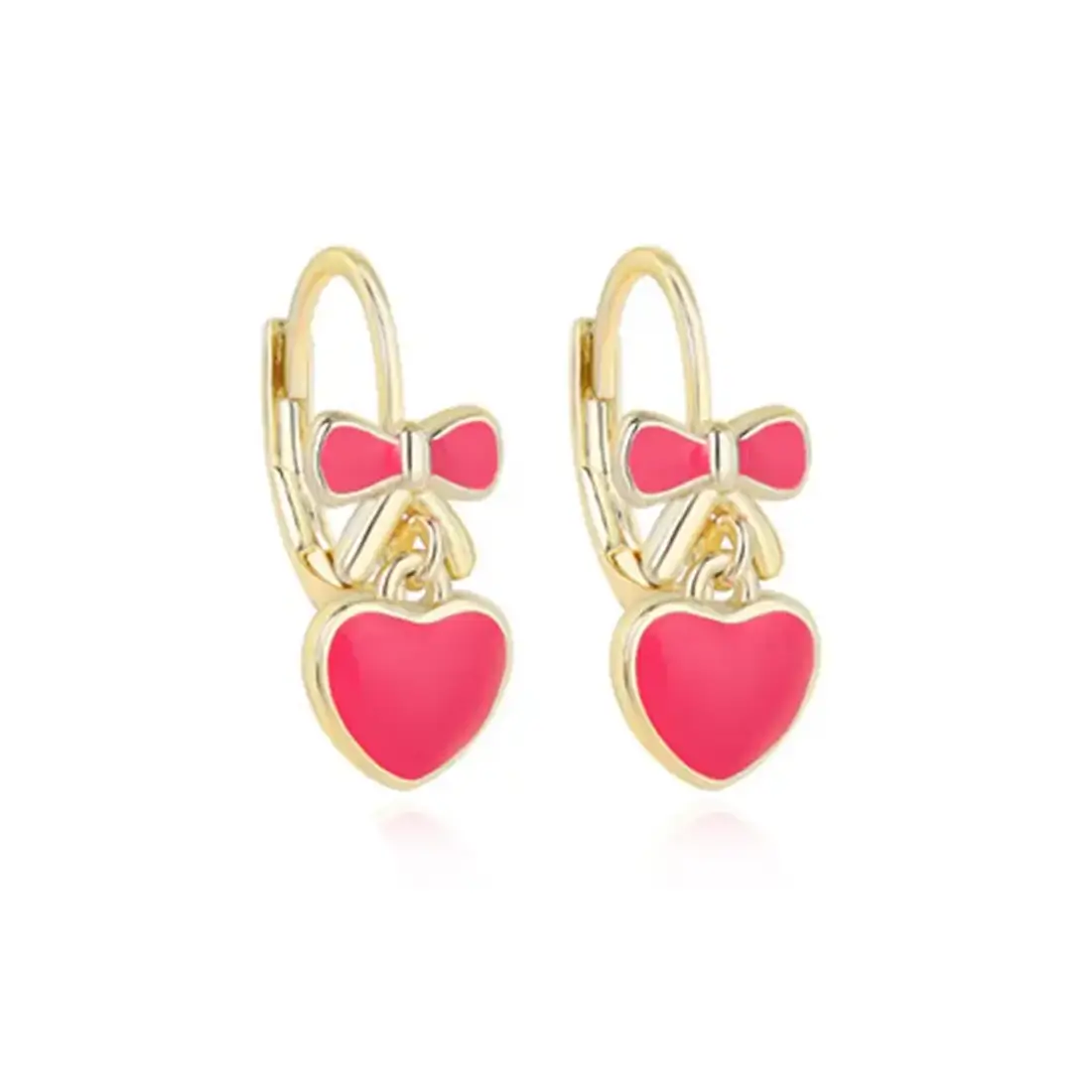 עגיל לב לילדות אלו מעוצבים במיוחד לילדות, העגילים אלו עשויים ממתכת בראס חזקה מאוד ומצופים זהב צהוב איכותי, בשילוב ציפוי אמייל בצבע ורוד.