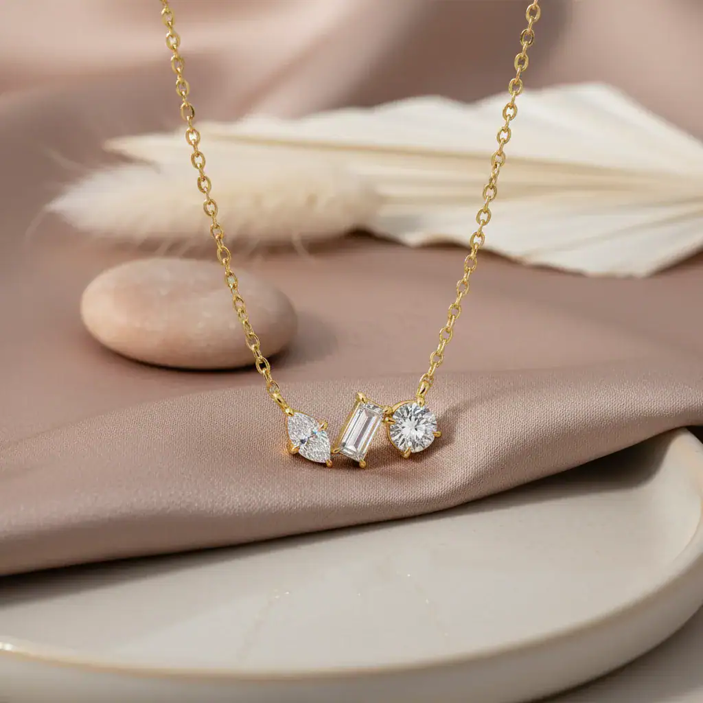 הרשימי את כולם עם שרשרת שלושה אבנים מרהיבה, המשלבת יוקרה וסטייל.