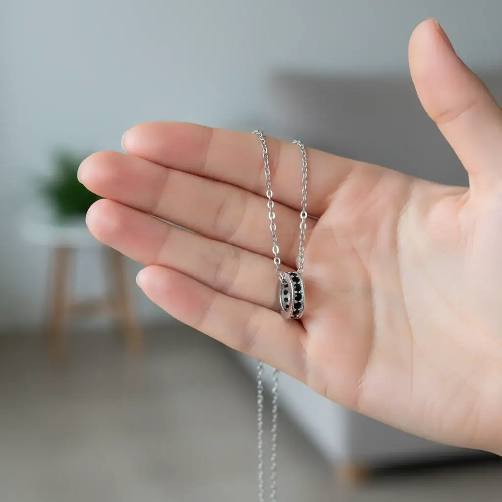 מחפשת מתנה מרגשת ובלתי נשכחת לאישה שאת אוהבת? שרשרת חישוק משובץ שחור היא הבחירה המושלמת! בין אם זה יום הולדת, יום נישואין, או סתם רצון להביע את הערכתך, השרשרת הזו תראה לה כמה אכפת לך. היא תזכיר לה את אהבתך בכל פעם שתענוד אותה, ותגרום לה להרגיש יפה, מוערכת ואהובה.