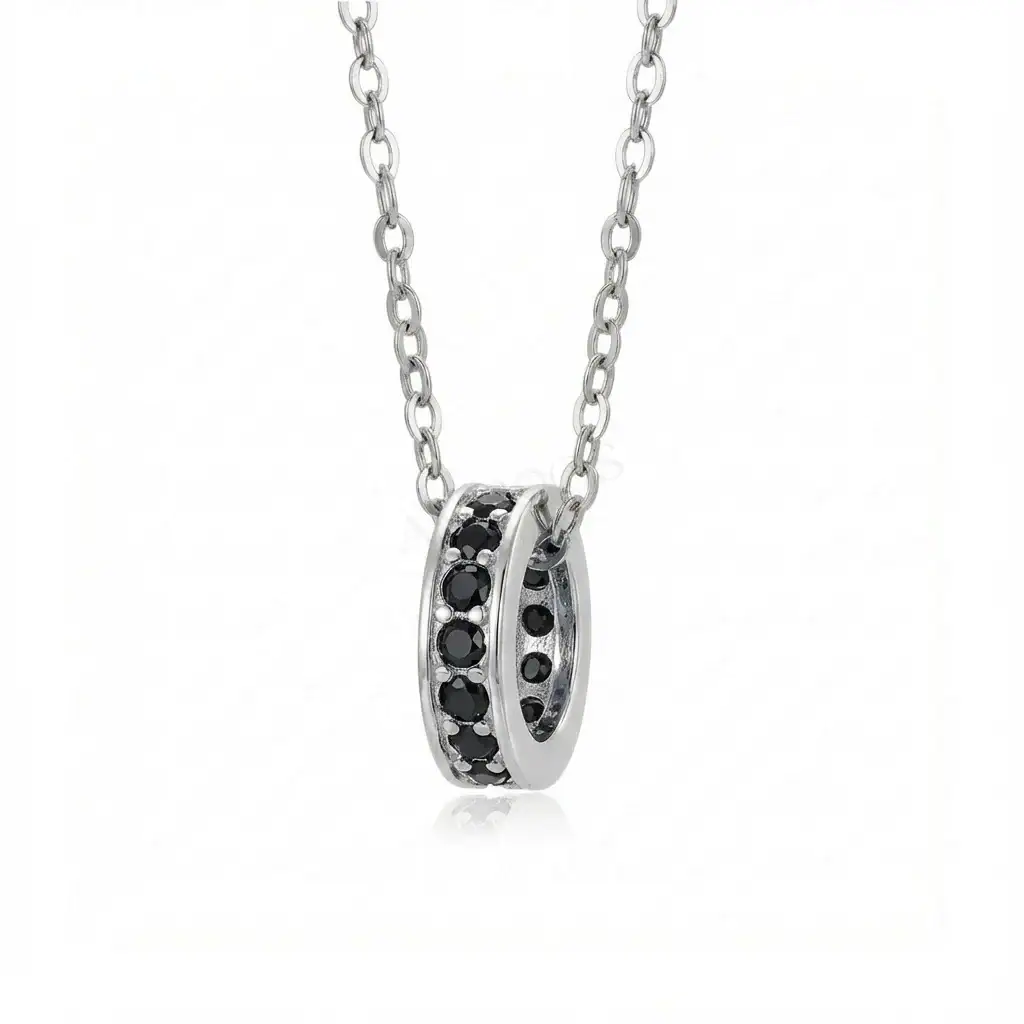 חישוק משובץ שחור – תכשיט עוצר נשימה שנועד להאיר כל הופעה! שרשרת החישוק המעודנת הזו, בעיצובה הנקי והמתוחכם, משובצת בשורות של זירקונים שחורים מנצנצים, הלוכדים את האור ומעניקים ניצוץ מסתורי וחושני.