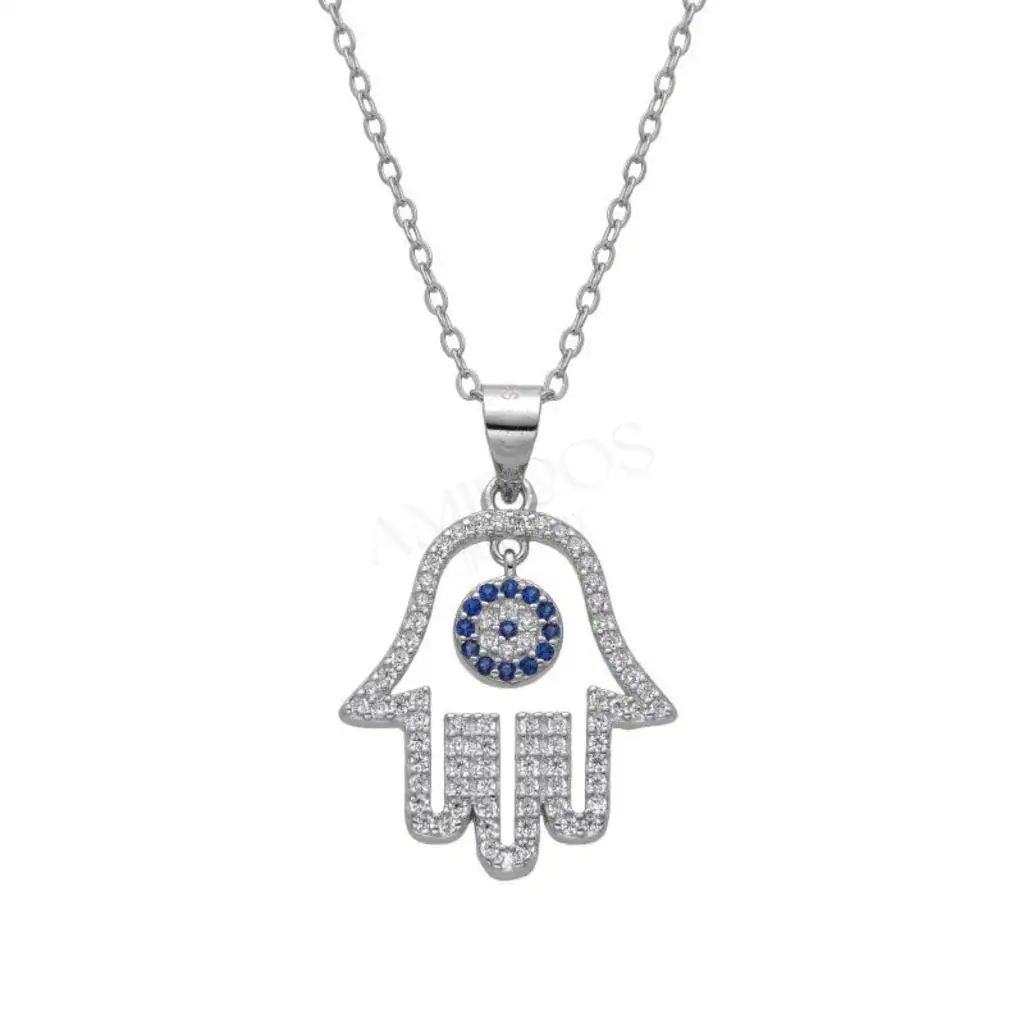 חמסה עין כחולה זוהרת ביופייה, שרשרת עדינה המשדרת הגנה וסטייל. העיצוב המוקפד, עם שיבוץ הזירקונים הנוצצים המקיפים את סמל החמסה המסורתי ואת העין הכחולה המגינה, הופך אותה לתכשיט מיוחד במינו. הגימור המבריק של ציפוי הרודיום מוסיף לה מראה יוקרתי ונצחי. דמיינו אותה מתנוססת בעדינות על הצוואר, תופסת את קרני האור ומפזרת ניצוצות קסומים.