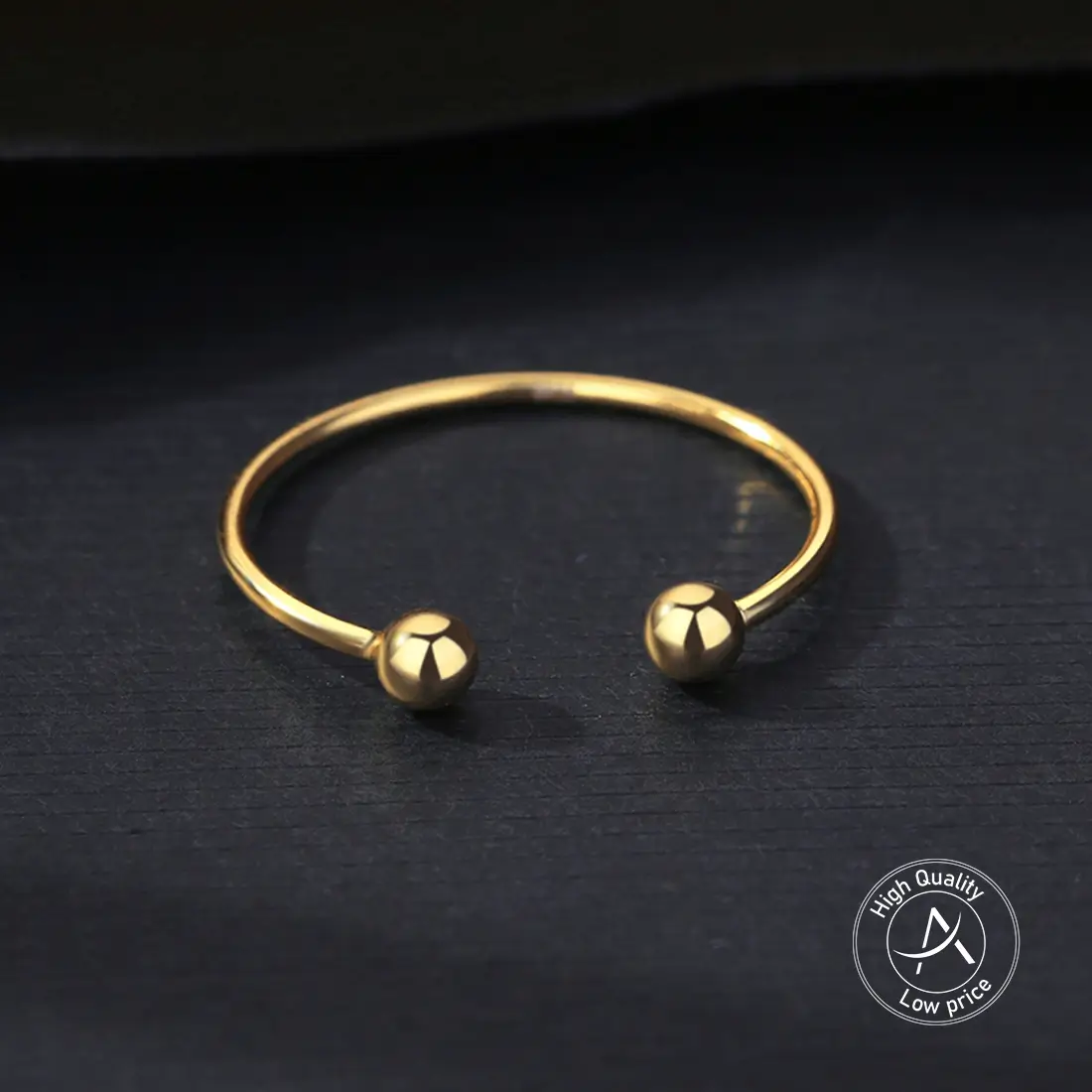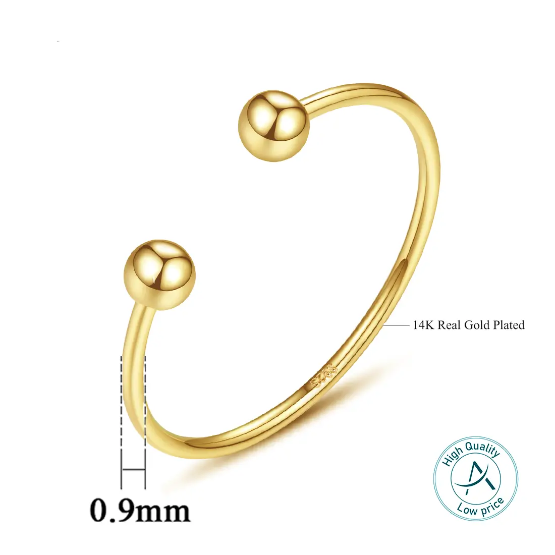 טבעת דקה כדורים מבית אמירוז תכשיטים – יצירה איכותית ומהממת. עשויה ממתכת בראס בעיצוב דק וייחודי, הטבעת מגיעה עם ציפוי זהב צהוב איכותי המעניק לה מראה בריק ומודרני.