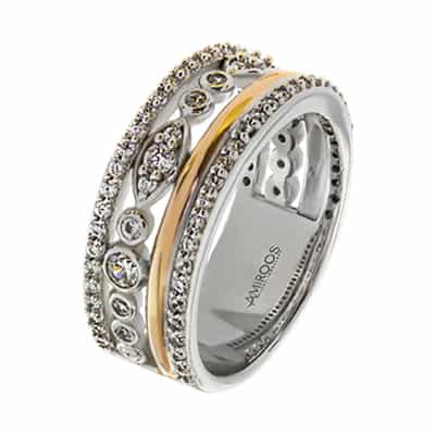 טבעת כסף 925 בציפוי רודיום עם קו בציפוי זהב צהוב משובצת אבני זרקוניה לבנות