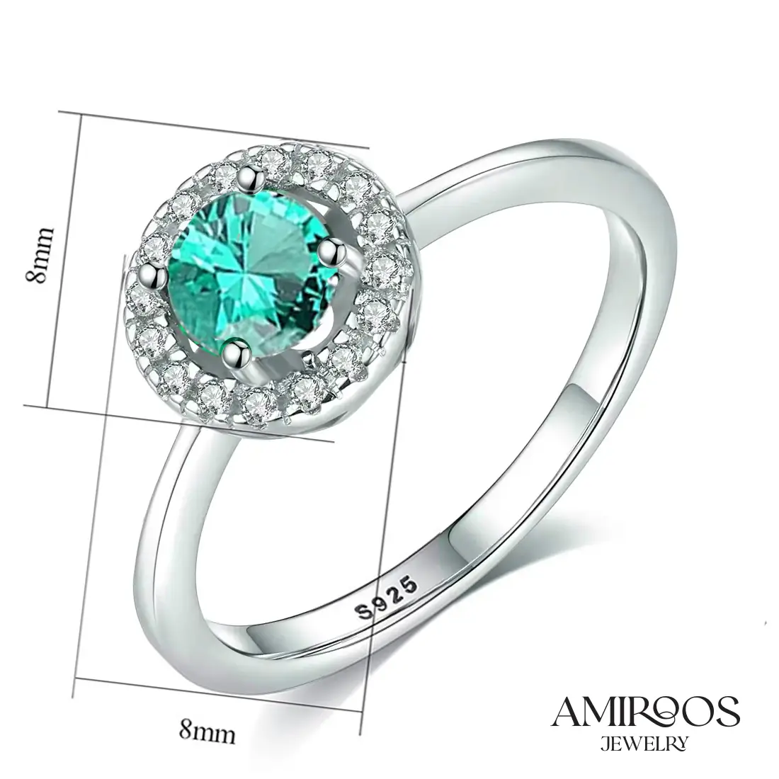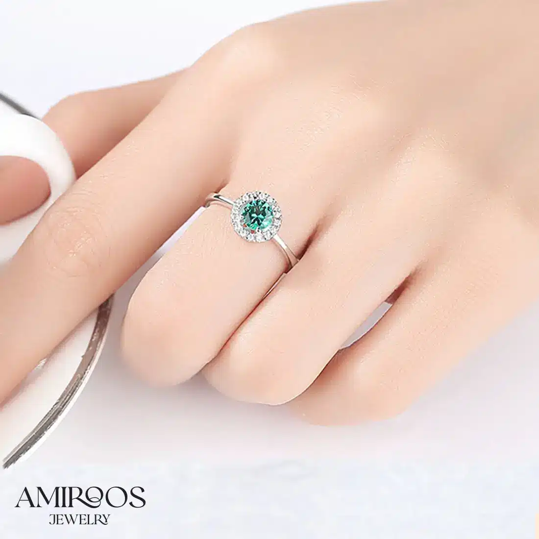 האבן, המזוהה עם חוכמה והגנה, משובצת בשיבוץ קלאסי ומוקפת בהילה נוצצת של זרקונים זעירים ונוצצים, היוצרים מראה מנצנץ ואלגנטי.