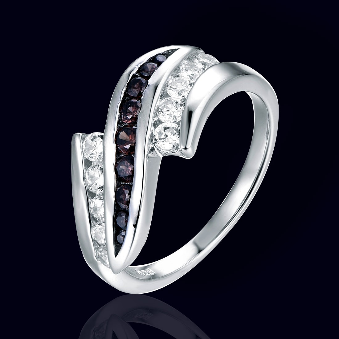 טבעת כסף 925 מצופה רודיום בשיבוץ אבני זרקוניה לבנות וחומות.