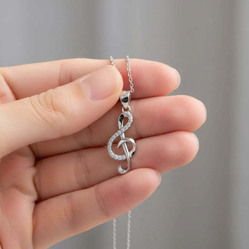 הוסיפי נגיעה של הרמוניה מוזיקלית למראה שלך עם שרשרת מפתח סול כסוף זו, תכשיט שיגרום לכל הופעה שלך לבלוט.