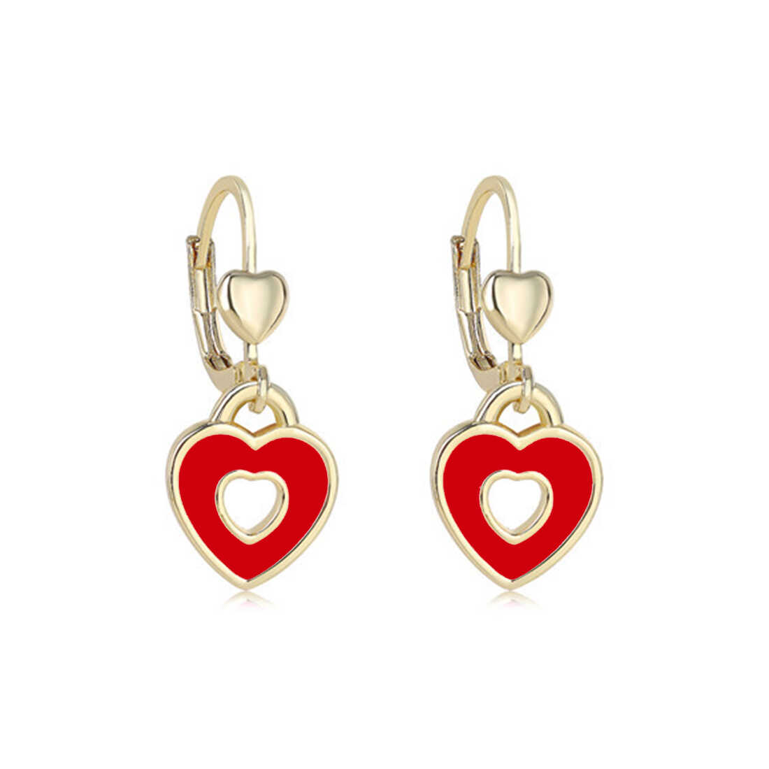 עגילים לבבות לילדות אלו מעוצבים במיוחד לילדות, העגילים אלו עשויים ממתכת בראס חזקה מאוד ומצופים זהב צהוב איכותי, בשילוב ציפוי אמייל בצבע אדום.