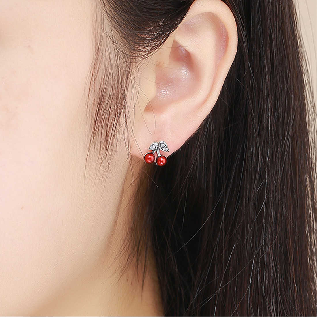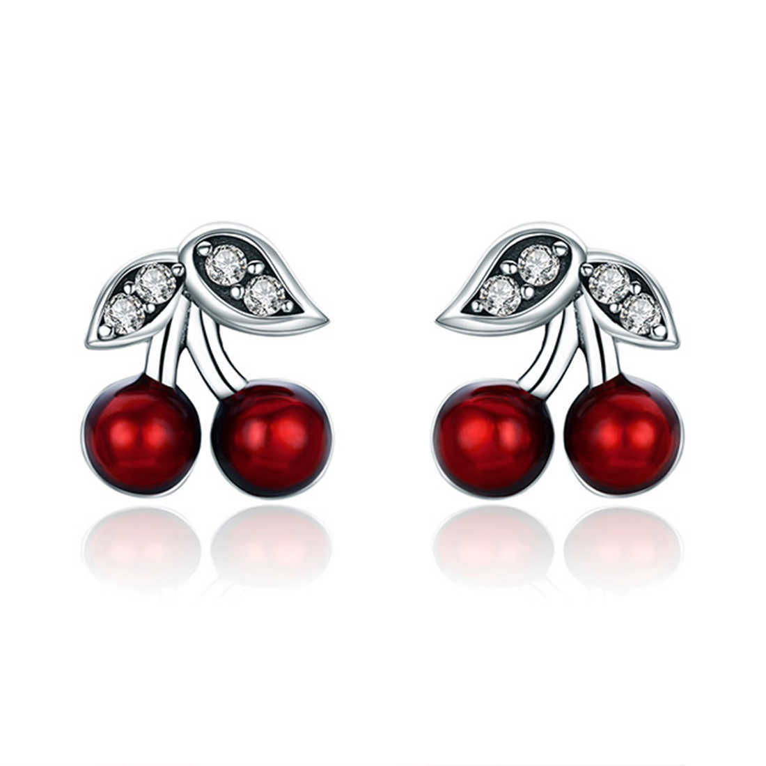 עגילים לילדות עשויים מכסף אמיתי, בצורת דובדבנים אדומים. מצופים רודיום, עם שיבוץ קל של אבני זירקוניה שקופים באיכות גבוהה מאוד,