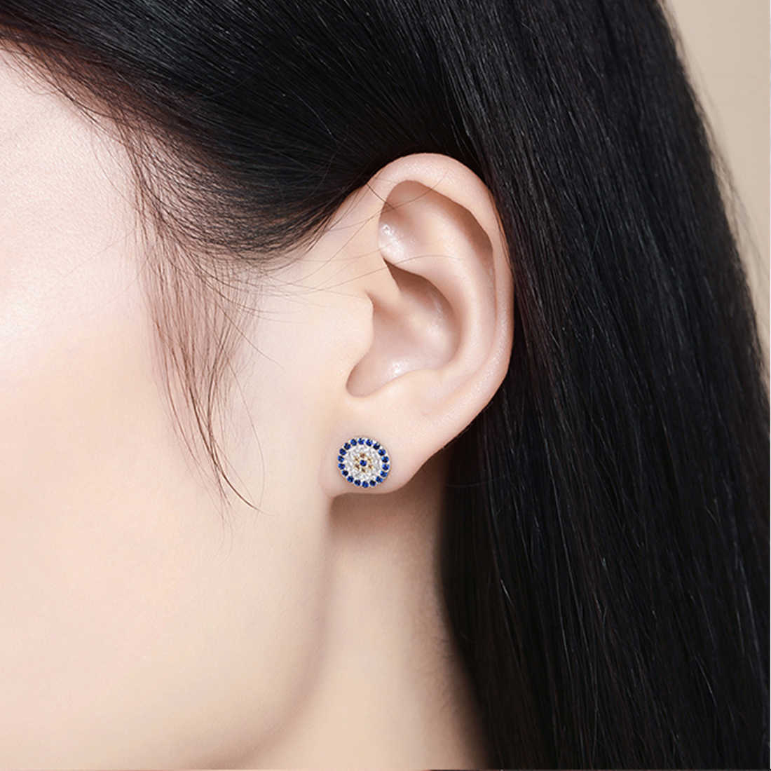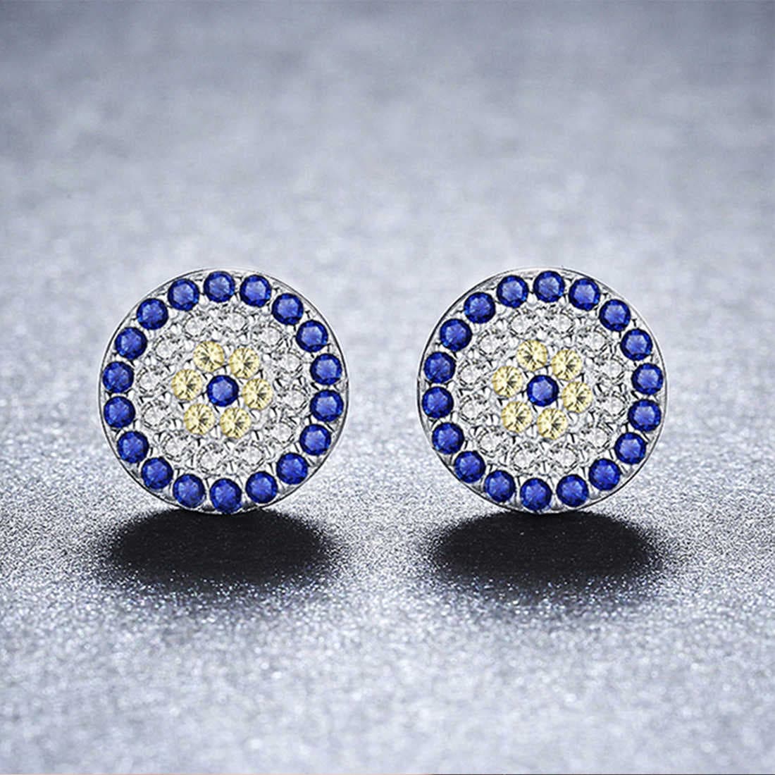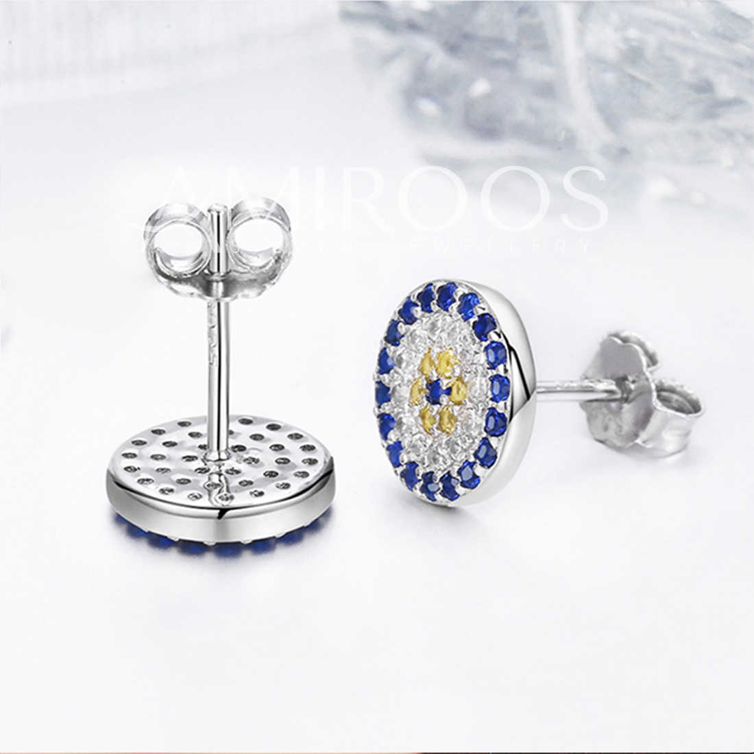 עגילים מכסף טהור 925 סטרלינג סילבר. עגולים צמודים לאוזן. משובצים אבני זירקוניה בצבע כחול / לבן. מתאימים לכל הופעה – בין אם ליציאה בערב, לאירוע מיוחד, או שגרתי במשרד.