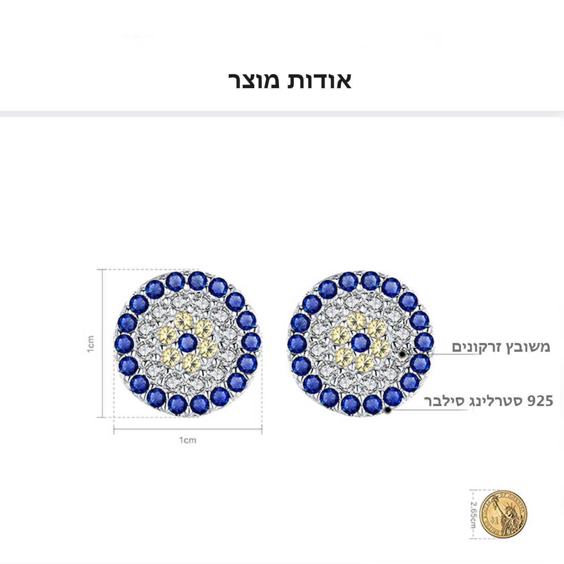 עגילים צמודים לאוזן עשויים מכסף 925 סטרלינג סילבר. משובצים אבני זירקוניה בצבעים כחול לבן.