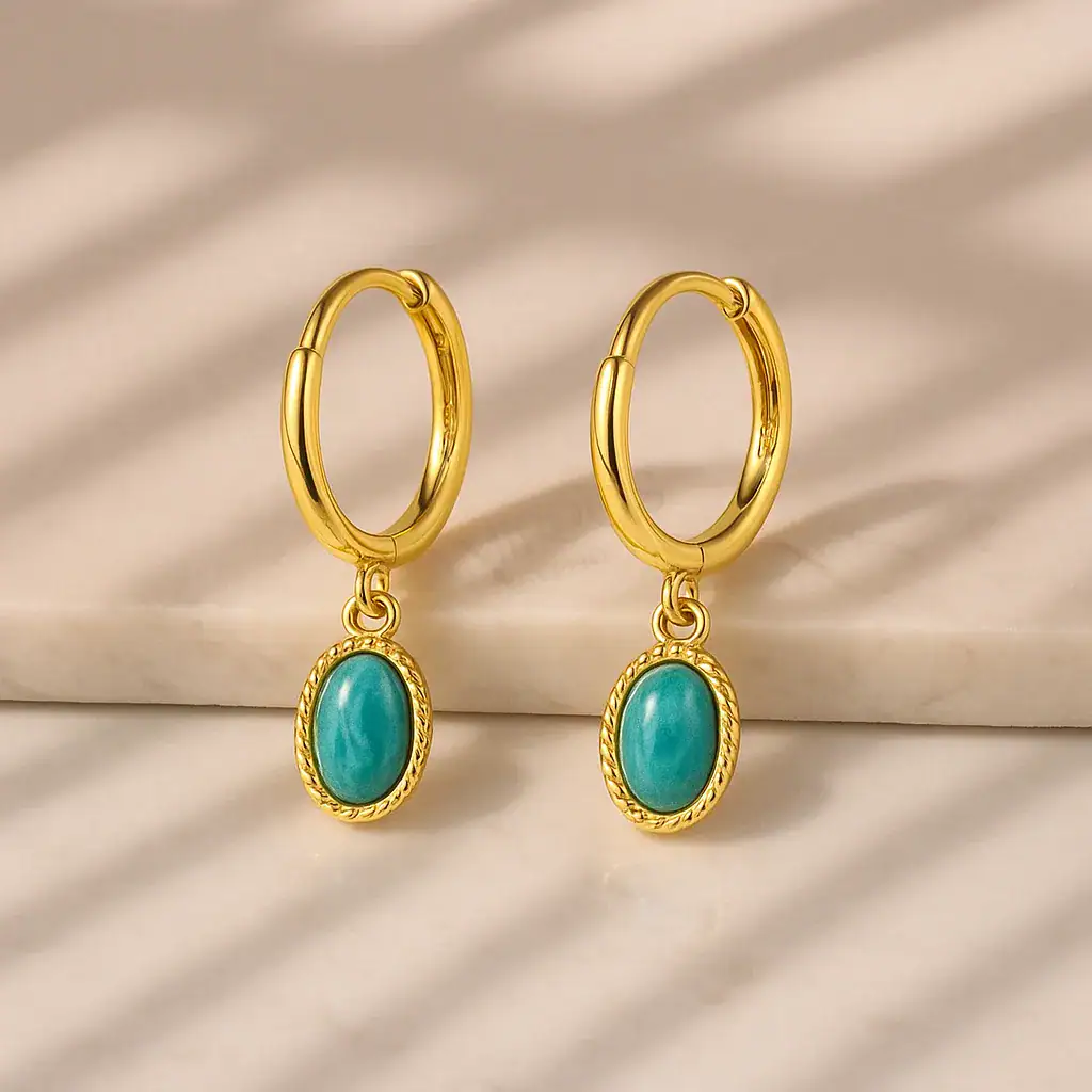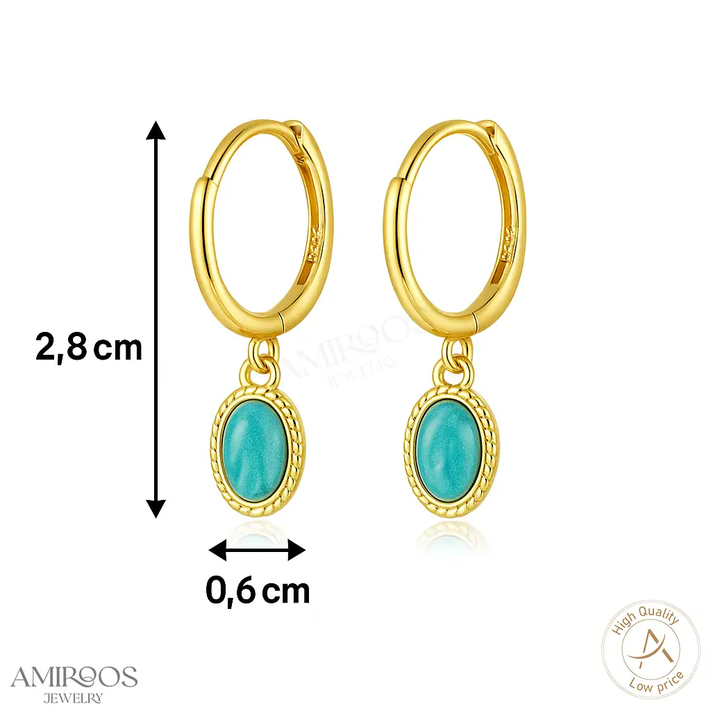 עגילי טורקיז מתלים אלה משדרים אלגנטיות וסטייל. הם מושלמים לנשים שרוצות להוסיף נגיעת צבע וחיים ללבוש, בין אם זה ליום יום או לאירוע מיוחד. הם מספקים נוכחות בולטת אך עדינה, שתשאיר רושם עמוק.