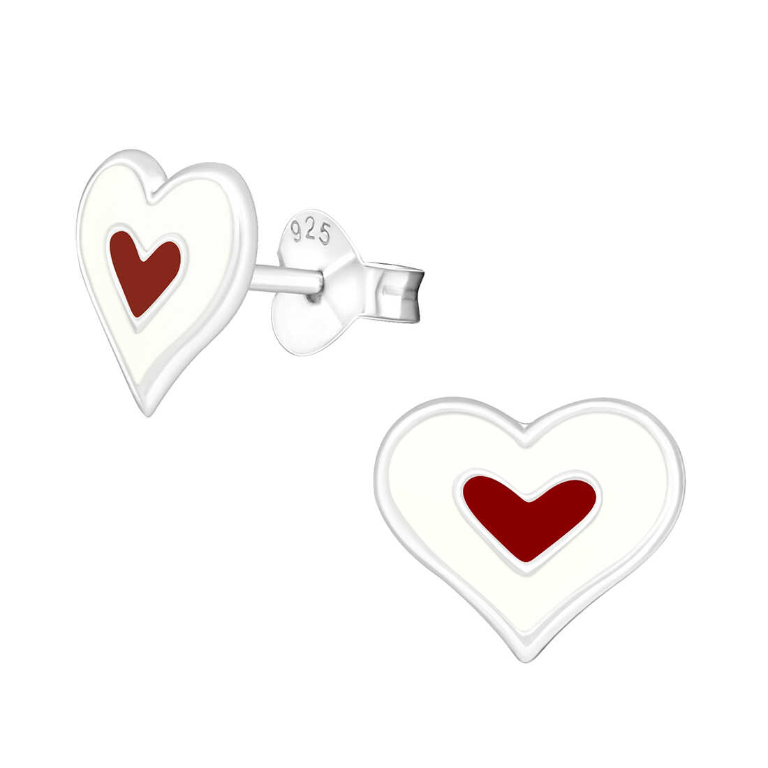עגילי כסף צמודים בצורת לב מצופים ציפוי אפוקסי איכותית.