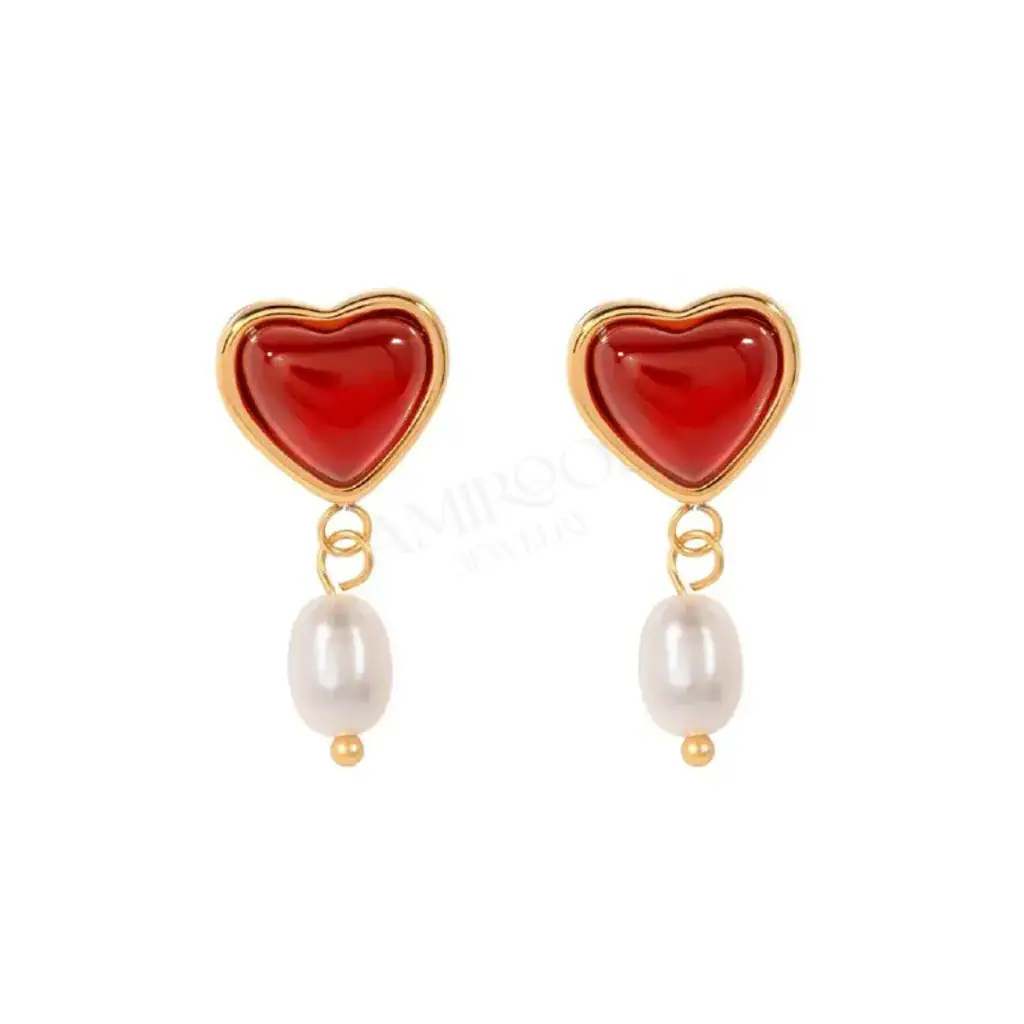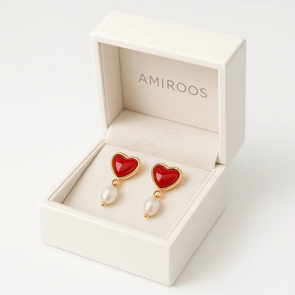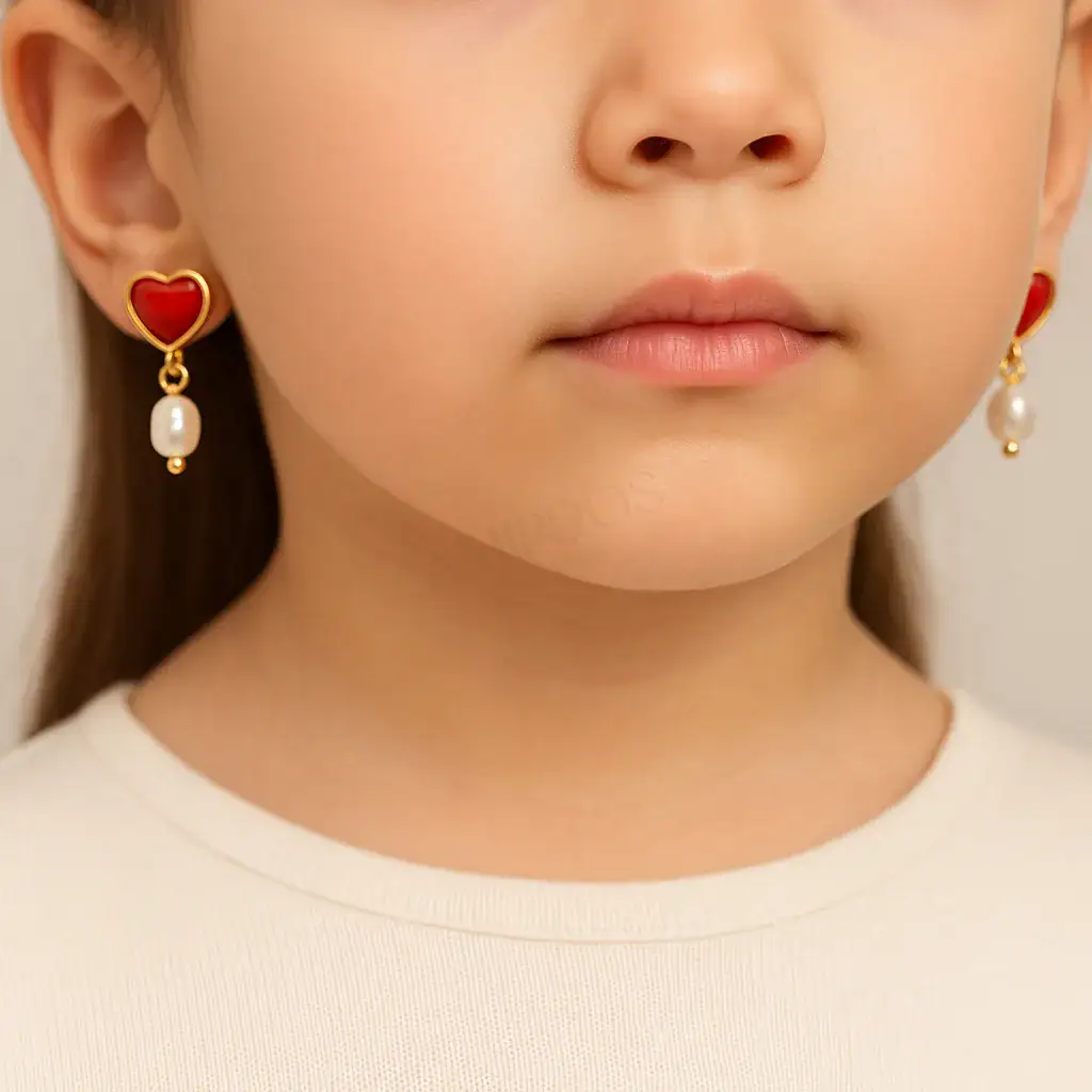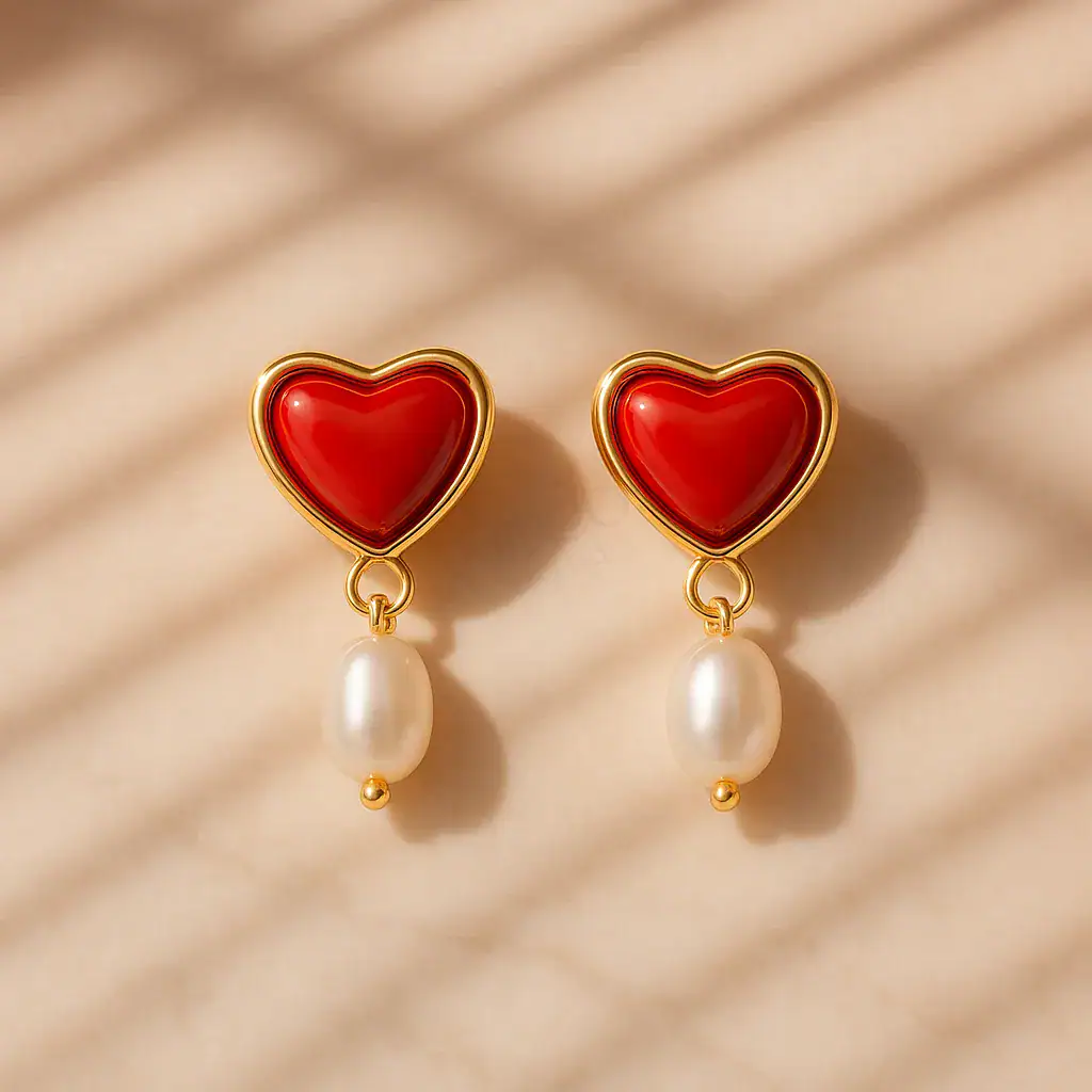 עגילי לב רב צבעיים אלה מושרים מהרגעים הקסומים בחיים. הלב המרכזי בצבע אדום עמוק מוסיף חום ואהבה לכל תכשיט, בעוד הפנינה התלויה מוסיפה נגיעת אלגנטיות ורך. כל עגיל מעוצב בקפידה כדי לשדר יופי וזוהר.