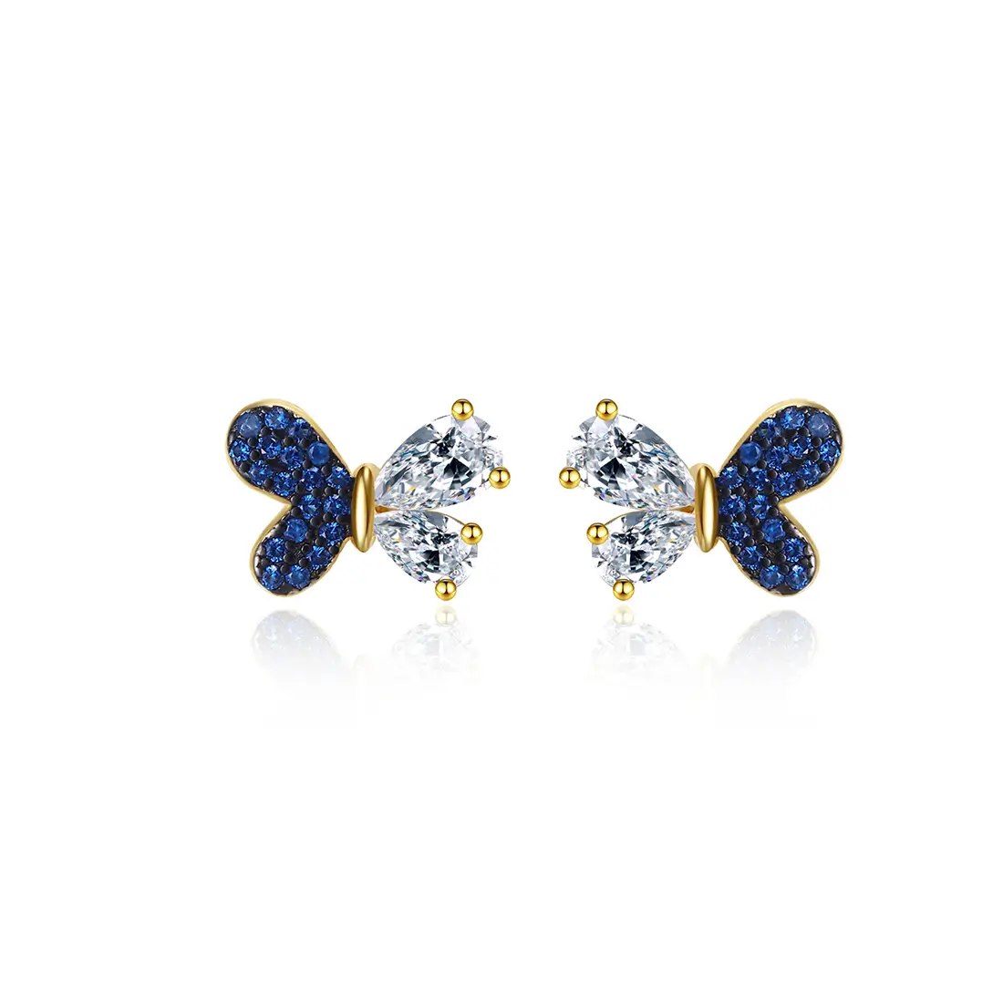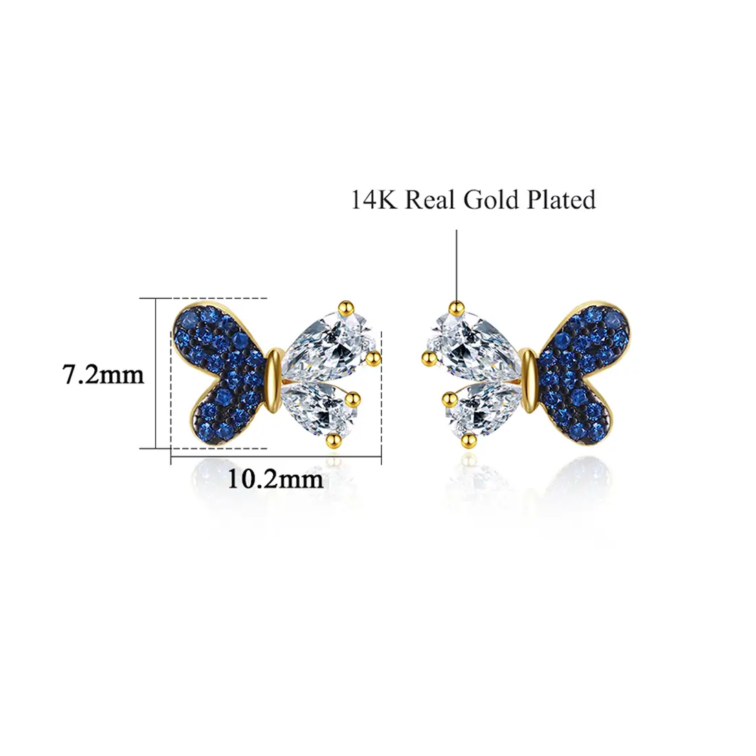 עגילי פרפר כחול הם יצירת אומן שתשדרג כל הופעה. העגילים עשויים מכסף 925 באיכות גבוהה, מצופים זהב צהוב לתחושה מפוארת ויוקרתית.
