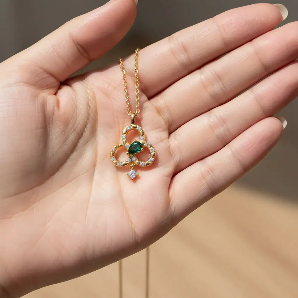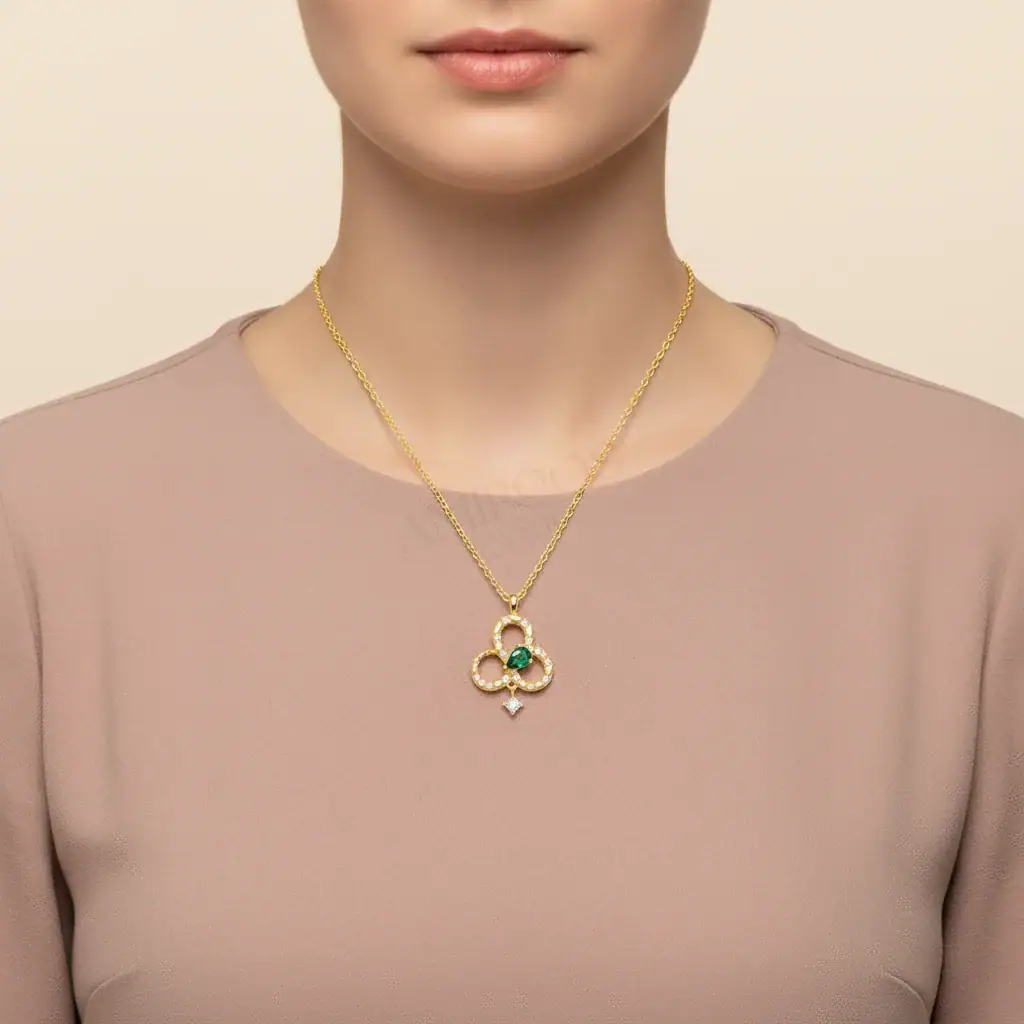 שרשרת זירקונים ירוקה זוהרת היא תכשיט עוצר נשימה, המשלב אלגנטיות קלאסית עם טוויסט מודרני. העיצוב המרהיב כולל תליון בצורת תלתן המקושט בזירקונים ירוקים מנצנצים, המעניקים לו מראה יוקרתי וייחודי. הציפוי הזהב הצהוב מוסיף חמימות וזוהר, והופך את השרשרת לפריט חובה בכל קולקציית תכשיטים.