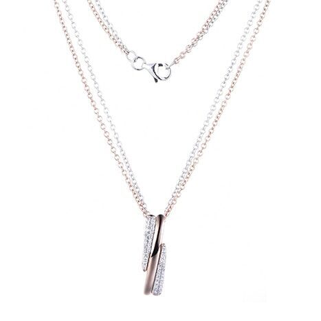 שרשרת כסף 925 בציפוי רודיום / זהב ורוד עם תליון קוים בשיבוץ אבני זרקוניה לבנות