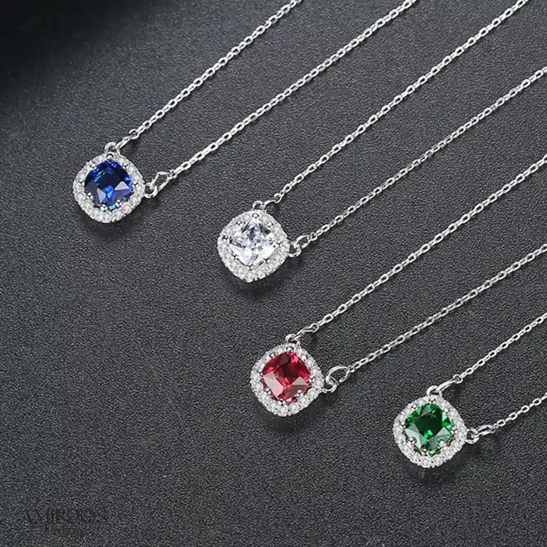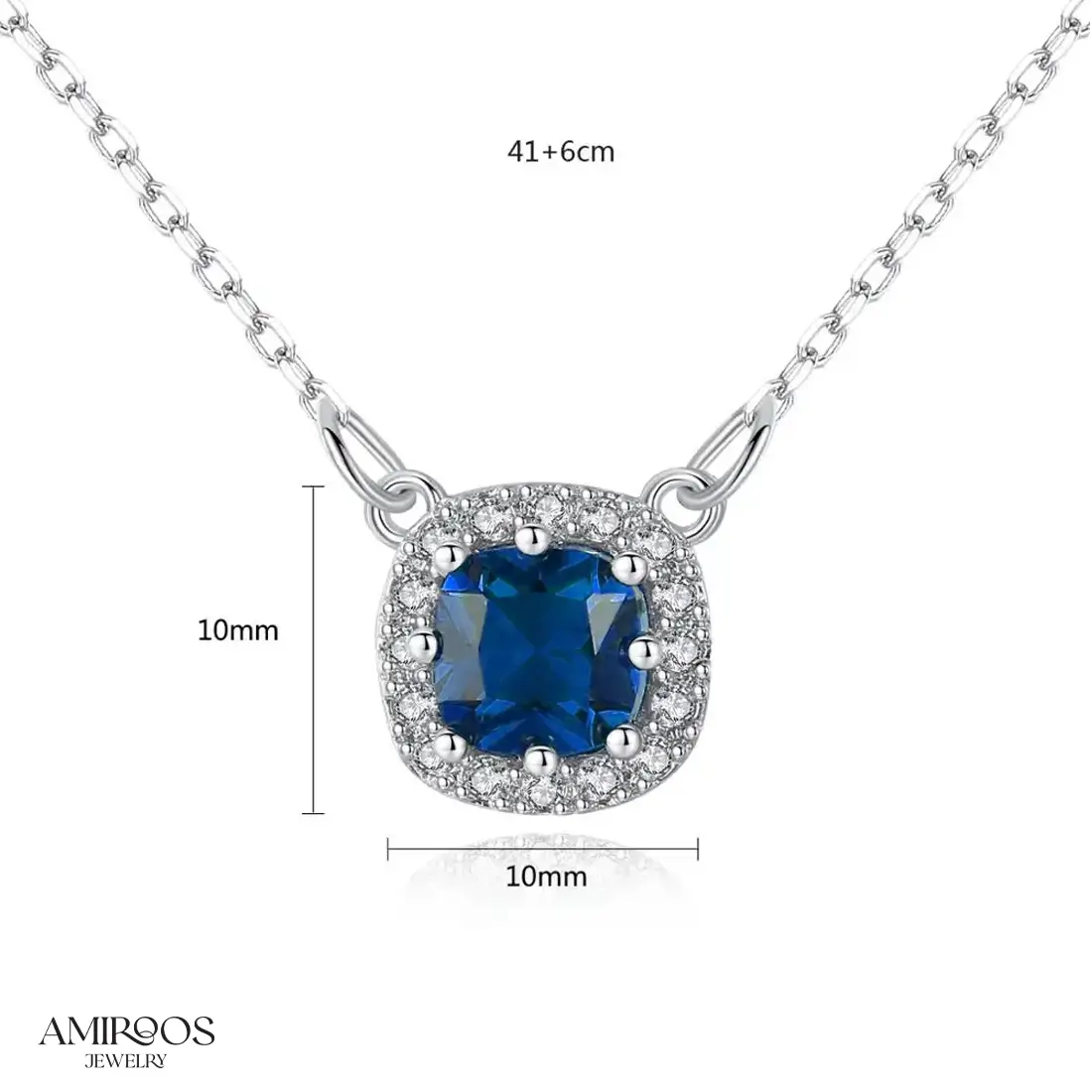 שרשרת תליון כחול מרובעת עם תוספת זרקונים מנצנצים. עיצוב מודרני וטרנדי. מתנה מושלמת לעצמך או לאהובה