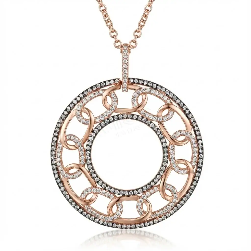 שרשרת תליון עגול בציפוי רוזגולד מרהיב, היא תכשיט שישדרג כל הופעה שלך. התליון העגול מעוצב בקפידה עם שילוב עדין של זירקונים מנצנצים, היוצרים מראה יוקרתי ומלא סטייל. העיצוב הייחודי של השרשרת משלב אלגנטיות וחדשנות, והופך אותה לפריט חובה בכל קולקציית תכשיטים.