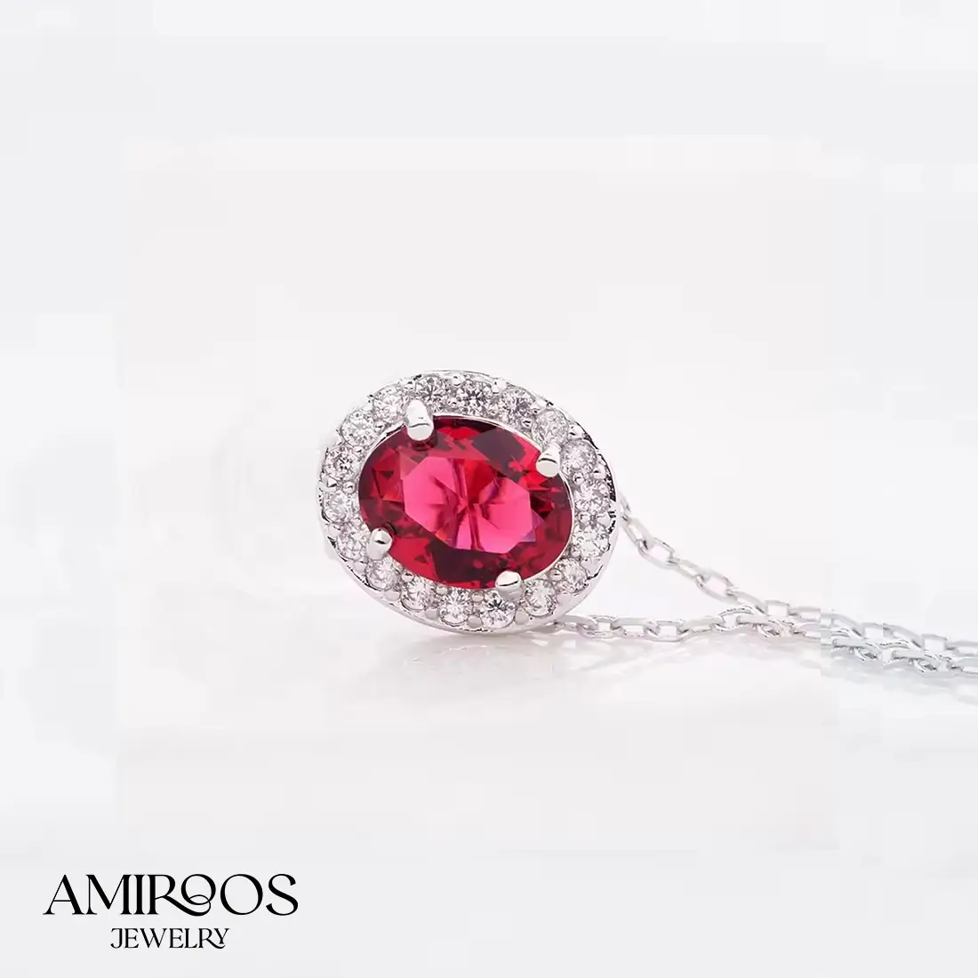 תליון בראס מדהימה עם אבן חן סינתטית אדומה וזרקונים מנצנצים. עיצוב מודרני וטרנדי. מתנה מושלמת לעצמך או לאהובה