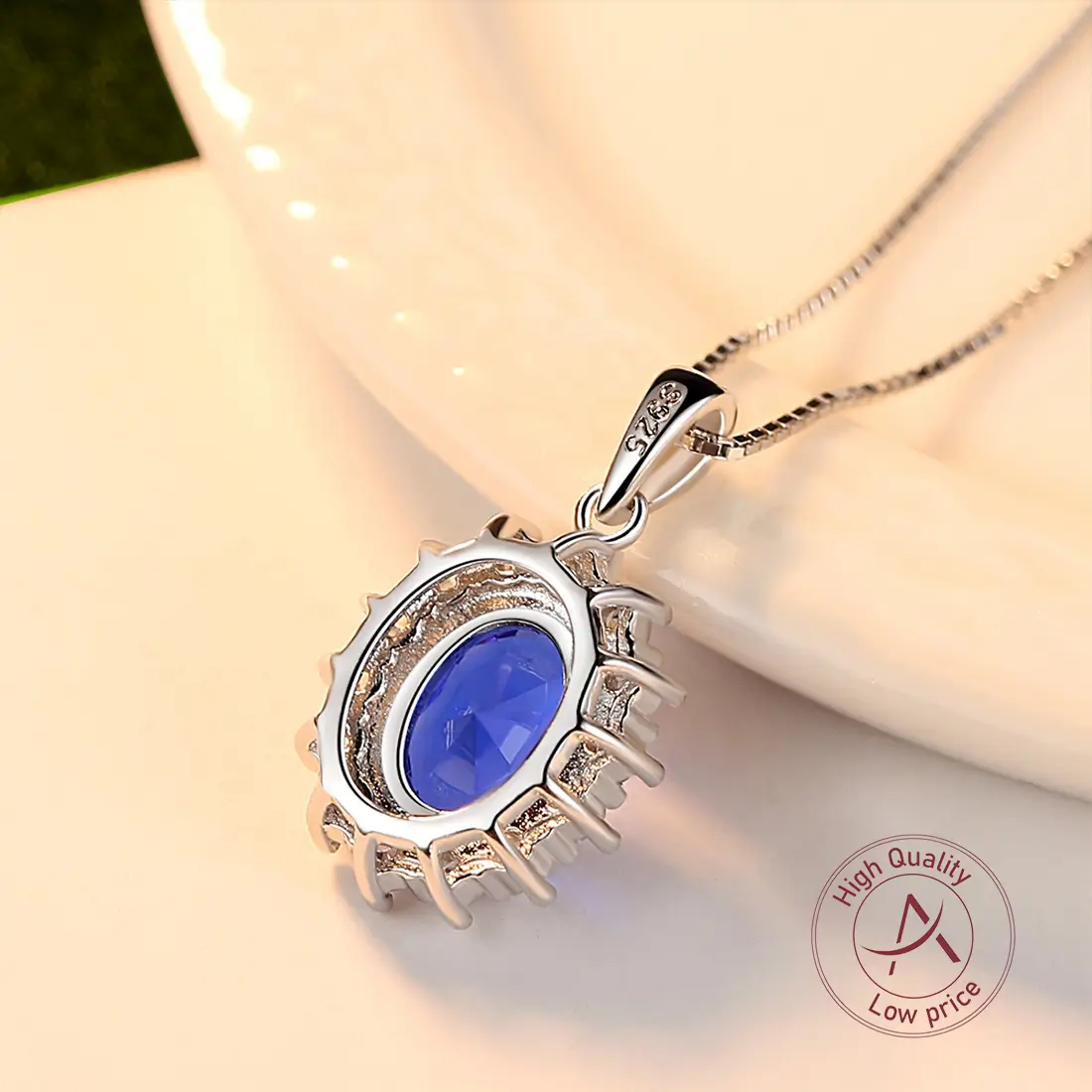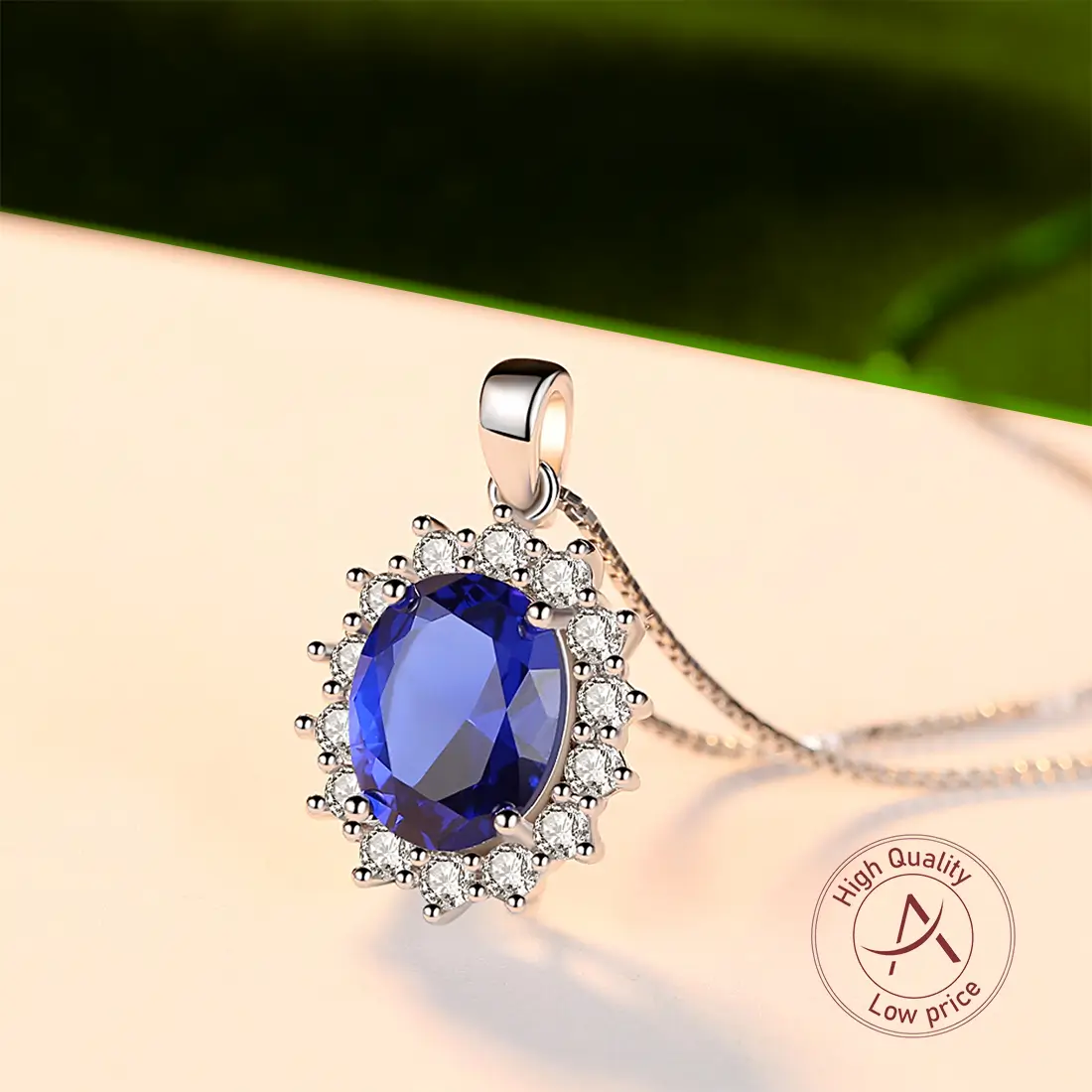 תליון וינטג' עם אבן ספיר כחולה מוקפת בזירקונים נוצצים. מתנה מושלמת לכל אישה שאוהבת סגנון אלגנטי.