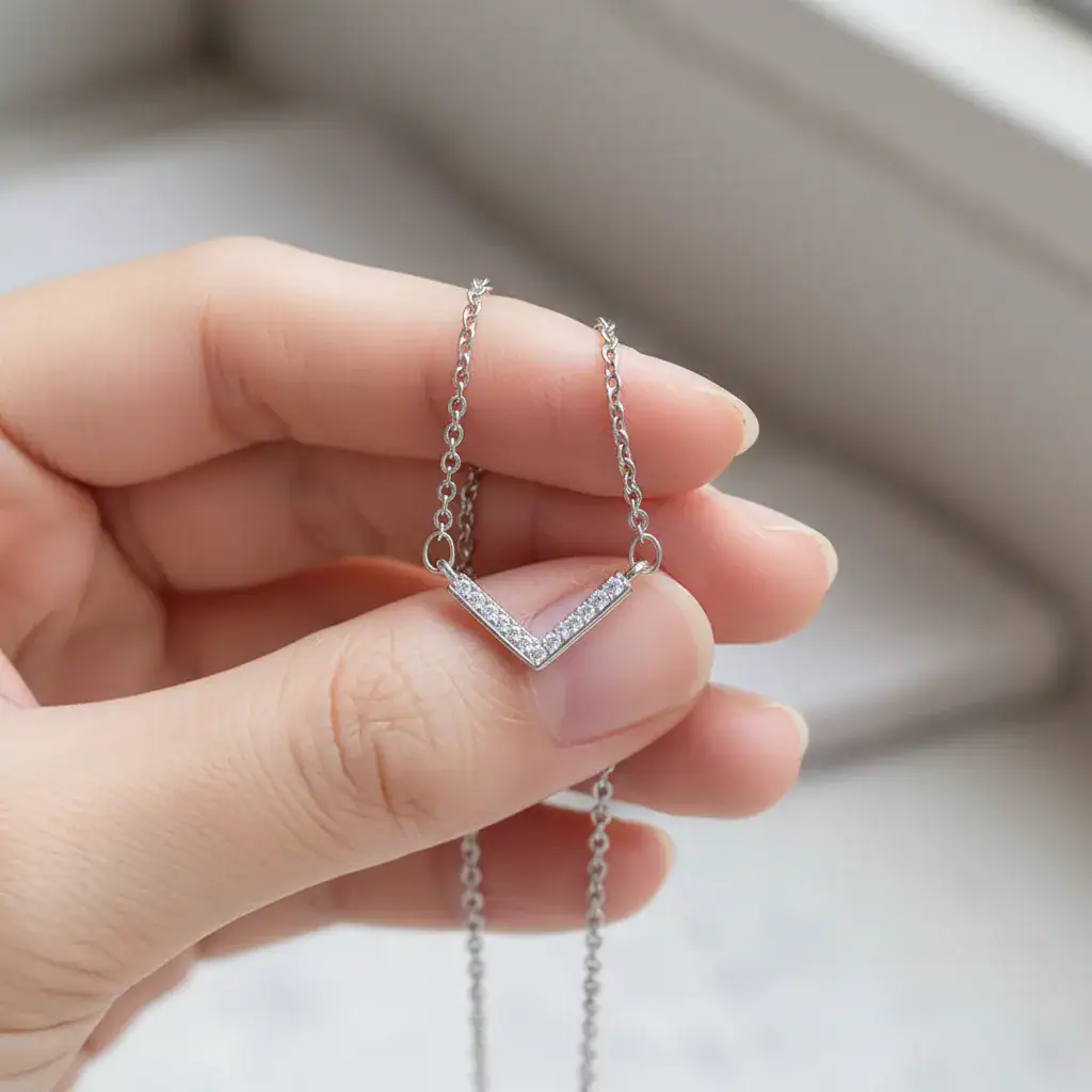 תליון ה"וי" הכסוף שלנו הוא תוספת מדהימה לכל הופעה. הוא נראה נהדר עם חולצת טי לבנה פשוטה או עם שמלת ערב אלגנטית. שלבי אותו עם עגילים כסופים צנועים או צמיד עדין כדי להשלים את המראה המושלם שלך. הוא מתאים גם ללבוש יומיומי וגם לאירועים מיוחדים, מה שהופך אותו לתוספת מגוונת ושימושית לארון התכשיטים שלך.